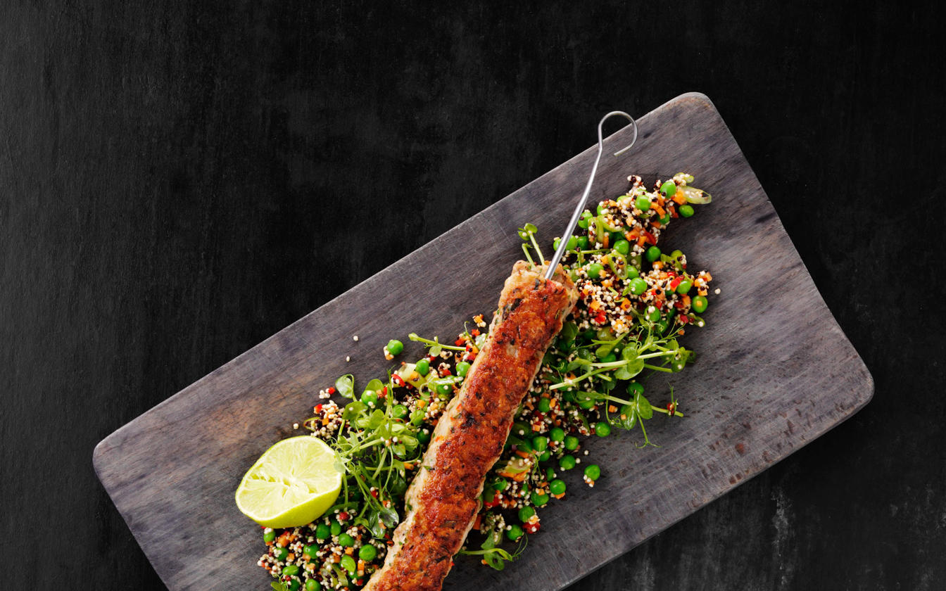 Adana kebab on a plate of wild quinoa